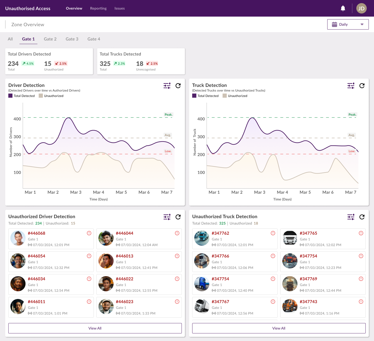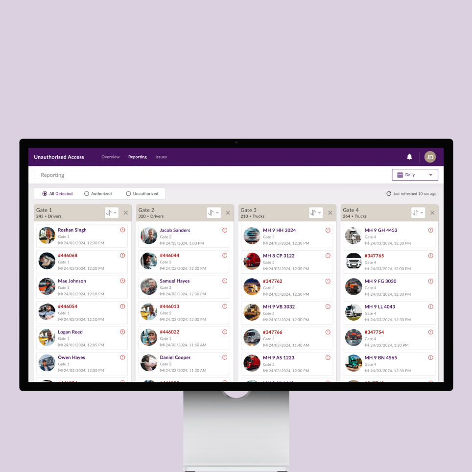 - تنبيهات في الوقت الحقيقي للقوى العاملة أو الشاحنات غير المصرح لها بالدخول غير المصرح به
