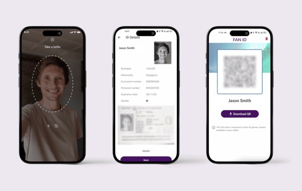 يطابق تطبيق Fan ID صورة المستخدم الذاتية ووثيقة الهوية ورقم الهاتف للتحقق من هوية المشجع بشكل آمن وموثوق.